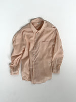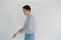 エアータンブラー加工を施し、ふっくらした風合いに仕上げたキュプラ混の上品なドビーストライプシャツ。優しい色合いとうっすら透けるシアー感が特徴。2色3サイズ展開。